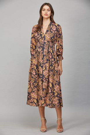 Expertly crafted with a stunning floral print, this Enchanted Blossom Dress features a gathered waist and front zip closure for a flattering fit. The midi length adds a touch of elegance, making it perfect for any occasion. Dress up your wardrobe with this timeless piece.