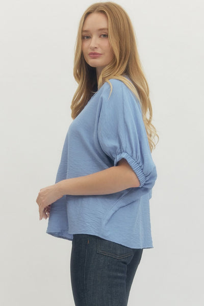 This Solid Dolman Top boasts a unique V-neck accent with trenza detailing, adding a touch of sophistication to your wardrobe. Made with quality material, it's perfect for any occasion. Simple yet stylish, this versatile top is a must-have addition to your wardrobe.