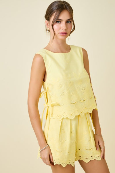 This charming two-piece ensemble we call "Eyelet Garden Set," offers a sophisticated yet breezy aesthetic perfect for warm-weather elegance.