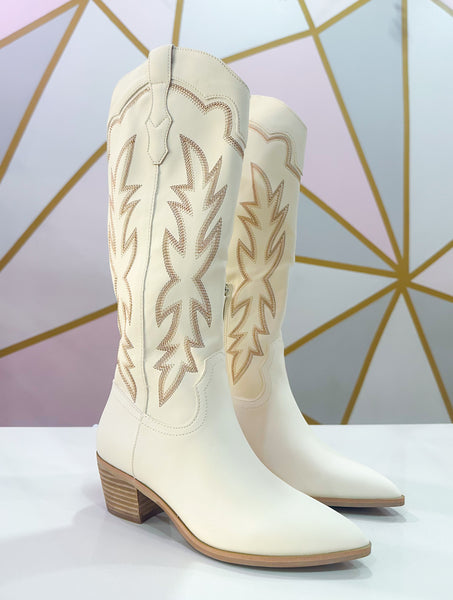 Expertly crafted with a knee-high contrast design, these off-white Samantha Boots feature intricate stitching that runs throughout. These boots are built to be true to size and will elevate any outfit, making them a stylish and comfortable addition to your wardrobe.