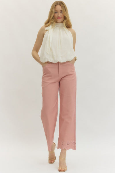 Hem Detail: Scalloped edge with delicate cut-out embroidery for a feminine touch.