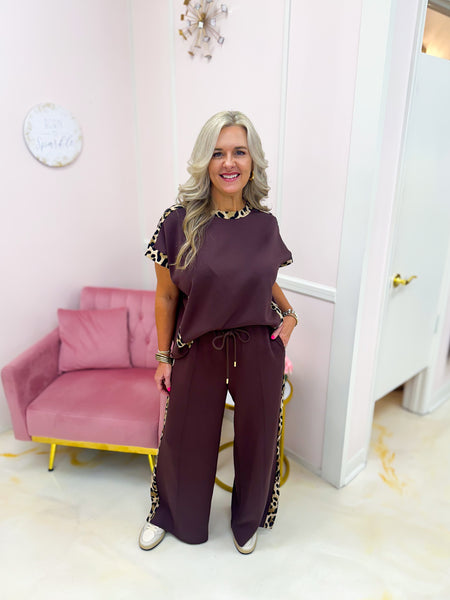 Unleash your wild side with our Drive Me Wild Set! This stylish brown pants set features fierce cheetah detailing on the side that will make you stand out in any crowd. Comfortable and chic, this set is perfect for making a statement and feeling confident. Go ahead, drive them wild!