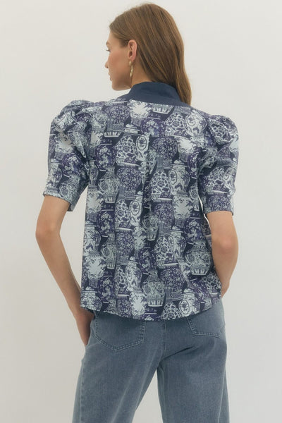 This vibrant patterned blouse offers a chic blend of elegance and casual charm, perfect for both daytime sophistication and evening flair. The design features a structured yet feminine silhouette with thoughtful detailing that elevates it to boutique quality.
