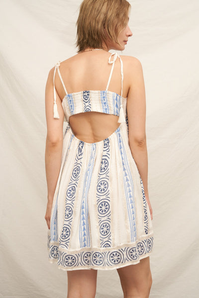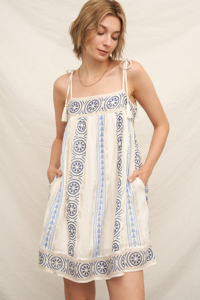 Dive into a sea of style with the Shimmer Tide Sundress! This embroidered mini marvel, complete with tassel shoulder ties (because who doesn’t love a little swing?), shimmers like a mermaid’s dream. Perfect for sunny escapades or just lounging like a sun-soaked starfish!