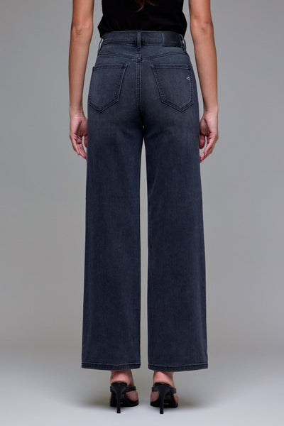 Introducing the Logan High Rise Wide Leg Jean by HIDDEN. Crafted from premium washed black denim, these jeans feature a high-rise fit and wide leg tapered bottom for a flattering silhouette. Elevate your style with these versatile and on-trend jeans.